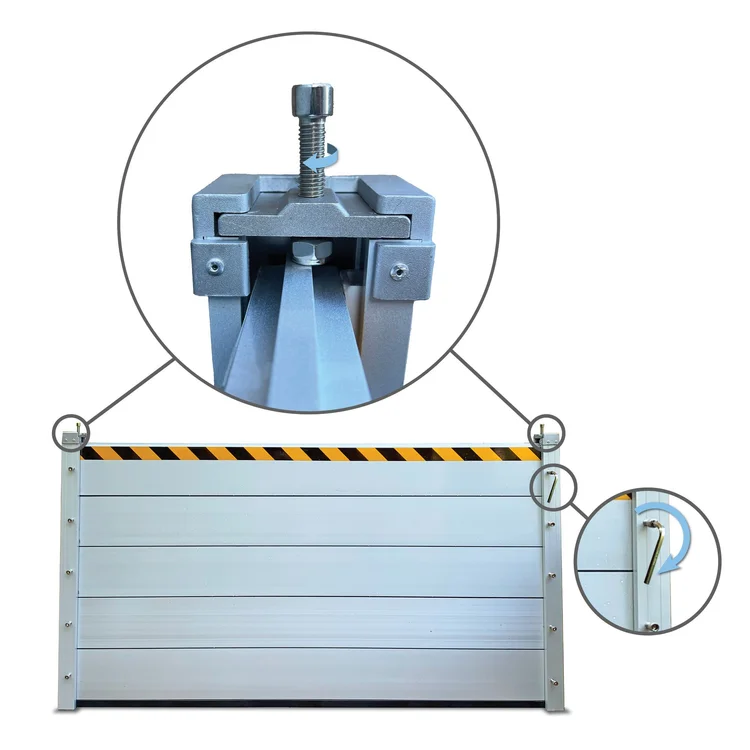 The flood barriers are sealing strip design between each baffle to ensure excellent waterproof performance of the flood barrier.