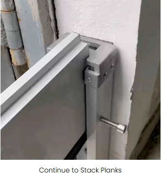 Continue to insert slats until all flood barrier slats are in position, ready for tightening.