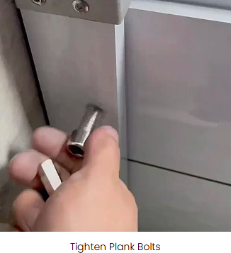Use the tightening bolts on the posts to tighten down the planks within the U-channel and to ensure a seal with the neoprene strips within the channel.