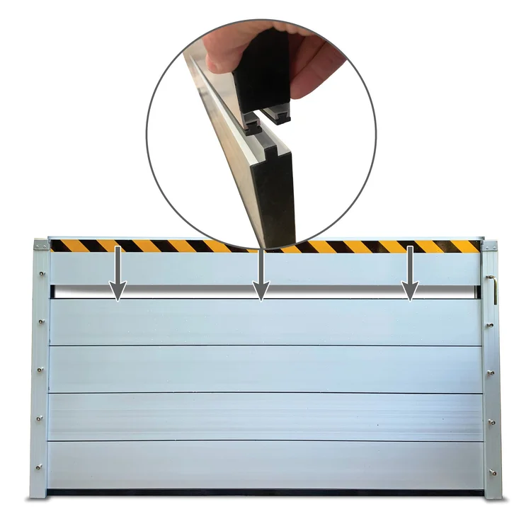 The flood barriers are sealing strip design between each baffle to ensure excellent waterproof performance of the flood barrier.