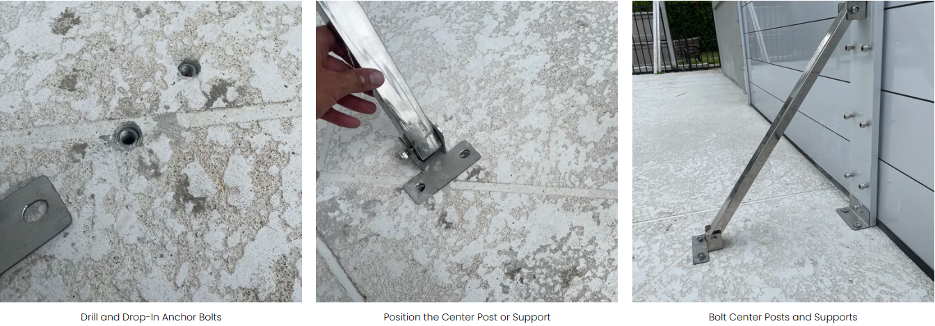 Once spacers are installed, mount Hammerhead posts onto the spacer, as you would to a standard wall. Simply bolt these into position using the same methodology indicated in our instructions.